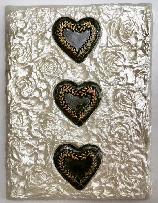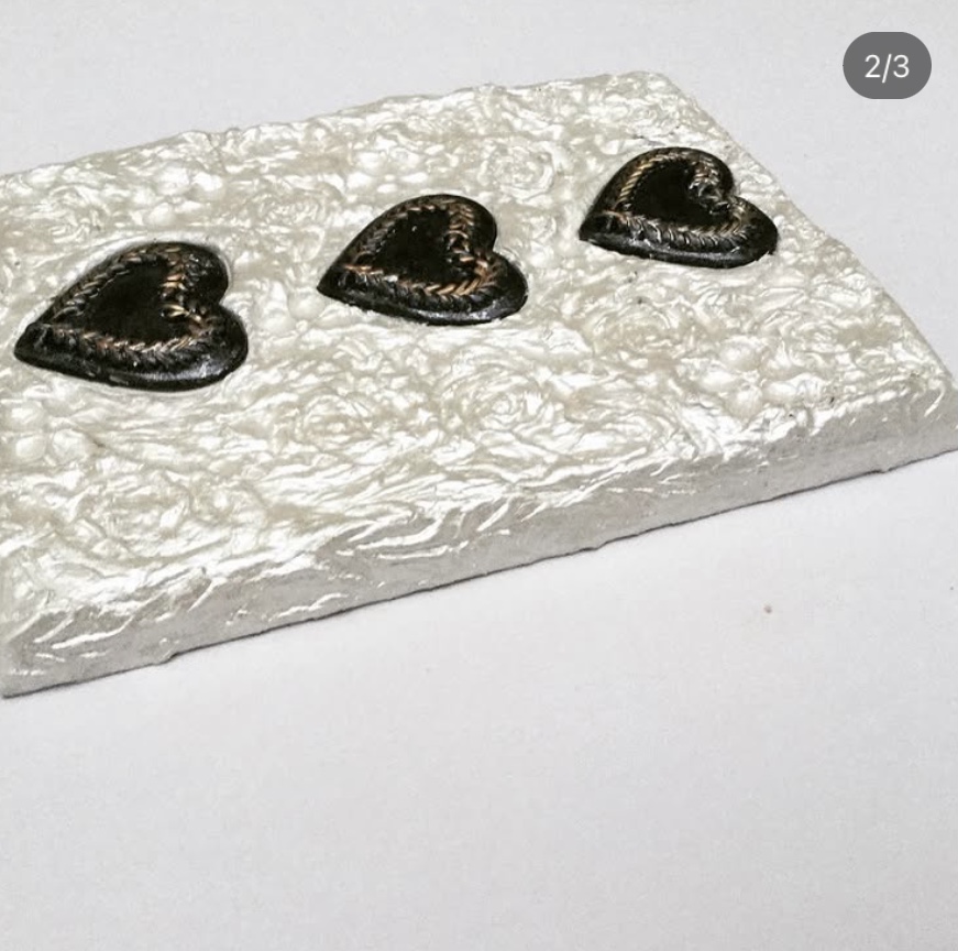 BLACK RESIN HEARTS SILVER SWIRL CLAY LOVE VALENTINES FATHERS DAY SHABBY CHIC