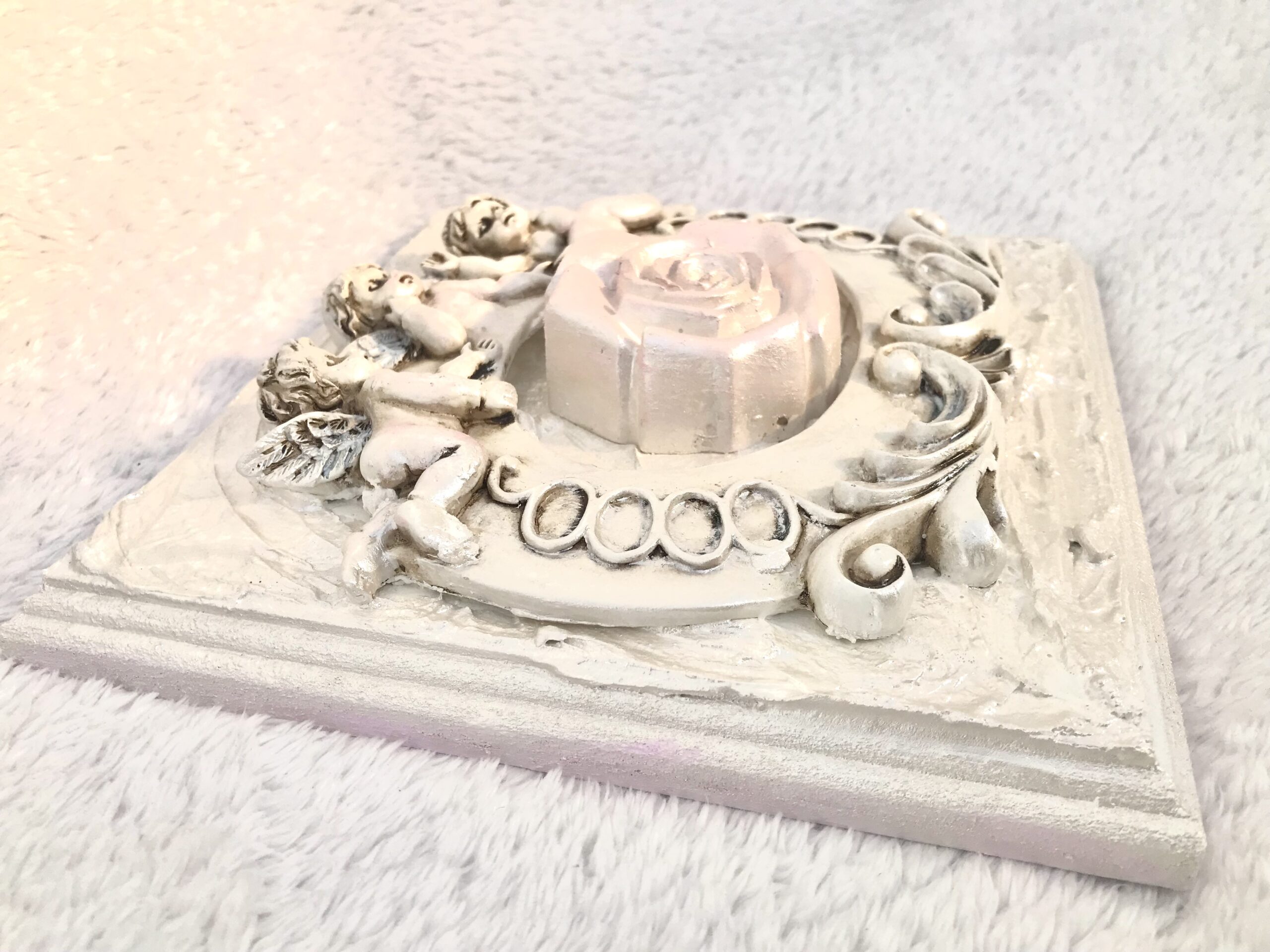 cherubs shabby chic love Mother’s Day white pink clay resin celebration three angels flowers rose spring summer